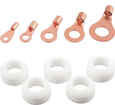 日本コネクト工業では、絶縁材にセラミック/ガラス/エポキシなど様々な材質に対応した製品を扱っており、取り付けやすいフランジ付き、熱電対用、大電流に対応した電流導入端子などもご用意しています。